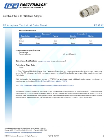 RF Adapters Technical Data Sheet PE9742