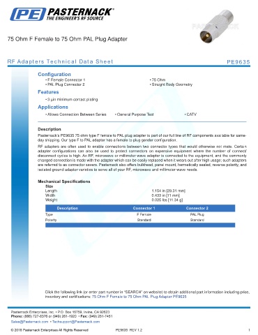 RF Adapters Technical Data Sheet PE9635