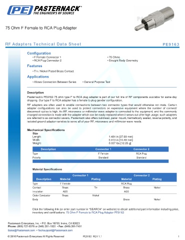 RF Adapters Technical Data Sheet PE9163