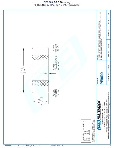 PE9609 CAD Drawing 75 Ohm Mini SMB Plug to Mini SMB Plug Adapter PE9609 REV 1.1 3