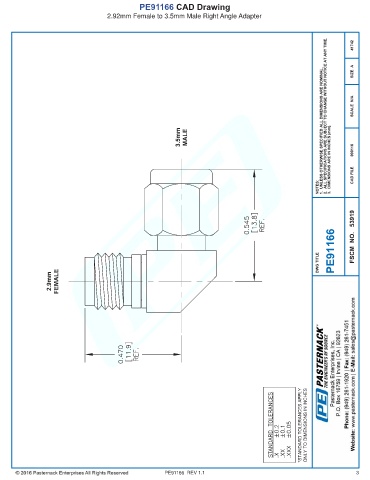 PE91166 CAD Drawing 2.92mm Female to 3.5mm Male Right Angle Adapter PE91166 REV 1.1 3