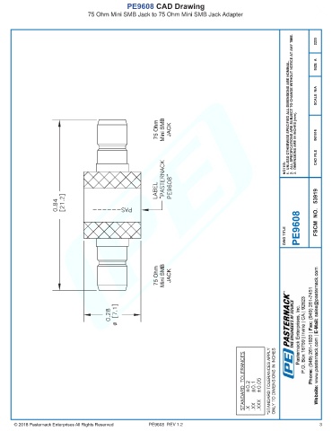 any representation or warranty regarding the suitability of the part described herein for any particular purpose, and Pasternack does not assume any liability arising out of the use of any part or documentation.