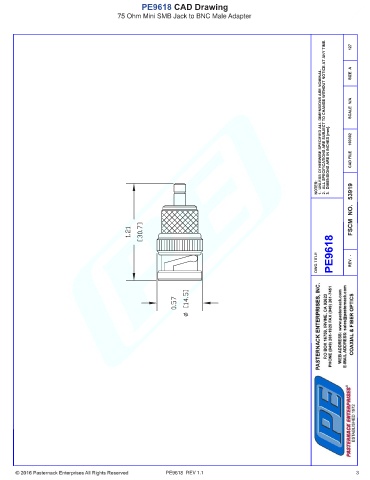 PE9618 CAD Drawing 75 Ohm Mini SMB Jack to BNC Male Adapter PE9618 REV 1.1 3