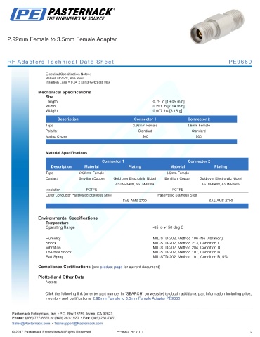 inventory and certifications: 2.92mm Female to 3.5mm Female Adapter PE9660