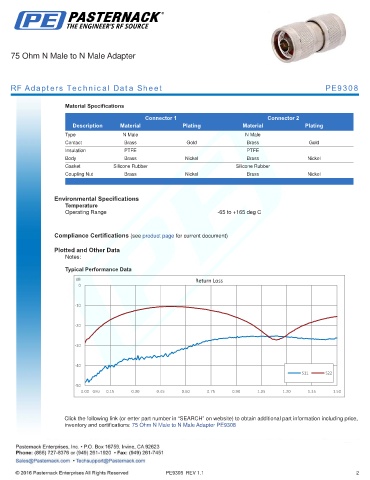 inventory and certifications: 75 Ohm N Male to N Male Adapter PE9308