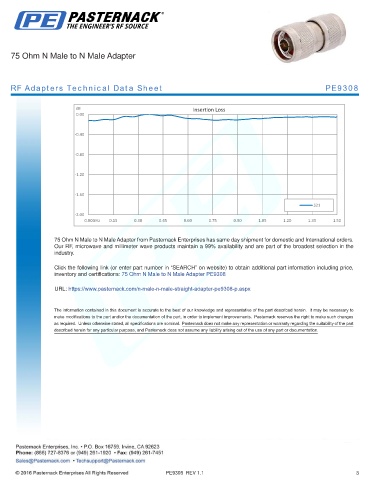 inventory and certifications: 75 Ohm N Male to N Male Adapter PE9308