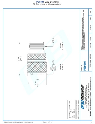 PE9391 CAD Drawing 75 Ohm N Male to N Female Adapter PE9391 REV 1.1 3