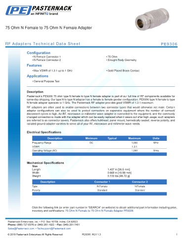 RF Adapters Technical Data Sheet PE9306