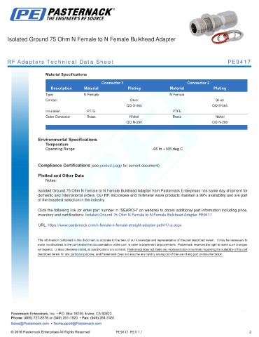 inventory and certifications: Isolated Ground 75 Ohm N Female to N Female Bulkhead Adapter PE9417