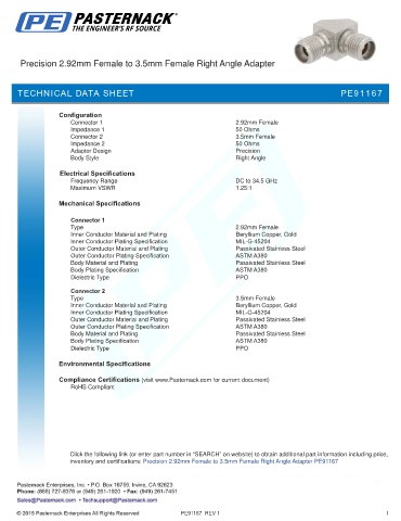 inventory and certifications: Precision 2.92mm Female to 3.5mm Female Right Angle Adapter PE91167
