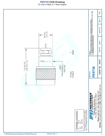 PE9738 CAD Drawing 75 Ohm N Male to F Male Adapter PE9738 REV 1.1 3