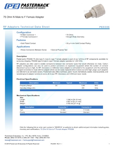 RF Adapters Technical Data Sheet PE9396