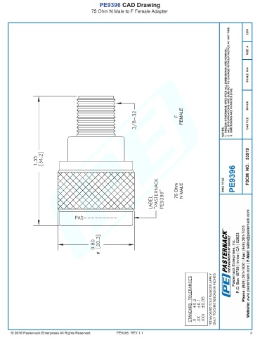 PE9396 CAD Drawing 75 Ohm N Male to F Female Adapter PE9396 REV 1.1 3
