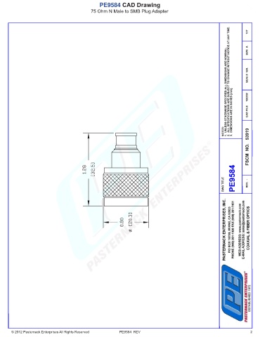 PE9584 CAD Drawing 75 Ohm N Male to SMB Plug Adapter © 2012 Pasternack Enterprises All Rights Reserved PE9584 REV 2