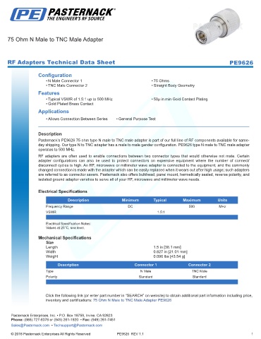 RF Adapters Technical Data Sheet PE9626