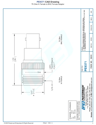 PE9371 CAD Drawing 75 Ohm N Female to BNC Female Adapter PE9371 REV 1.1 4