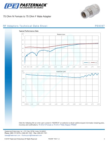 any representation or warranty regarding the suitability of the part described herein for any particular purpose, and Pasternack does not assume any liability arising out of the use of any part or documentation.