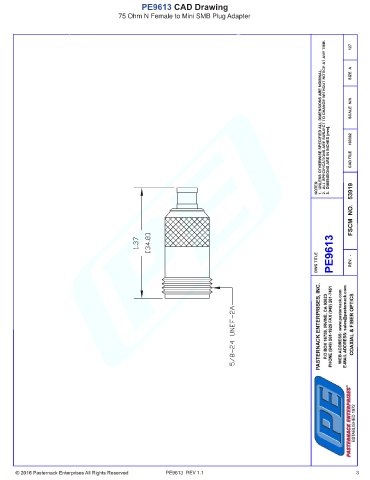 PE9613 CAD Drawing 75 Ohm N Female to Mini SMB Plug Adapter PE9613 REV 1.1 3