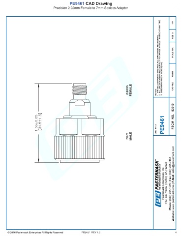 PE9461 CAD Drawing Precision 2.92mm Female to 7mm Sexless Adapter PE9461 REV 1.2 4