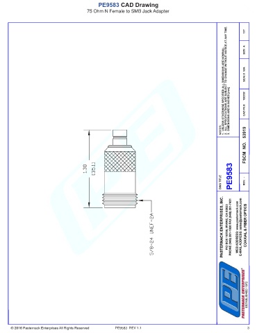 PE9583 CAD Drawing 75 Ohm N Female to SMB Jack Adapter PE9583 REV 1.1 3