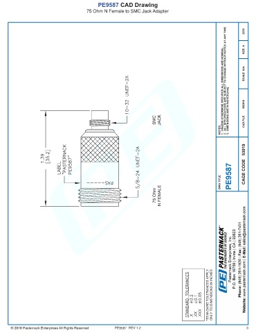 PE9587 CAD Drawing 75 Ohm N Female to SMC Jack Adapter PE9587 REV 1.2 3