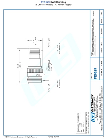 PE9629 CAD Drawing 75 Ohm N Female to TNC Female Adapter PE9629 REV 1.1 4
