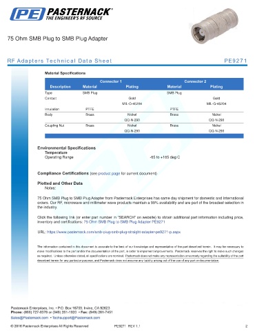 inventory and certifications: 75 Ohm SMB Plug to SMB Plug Adapter PE9271