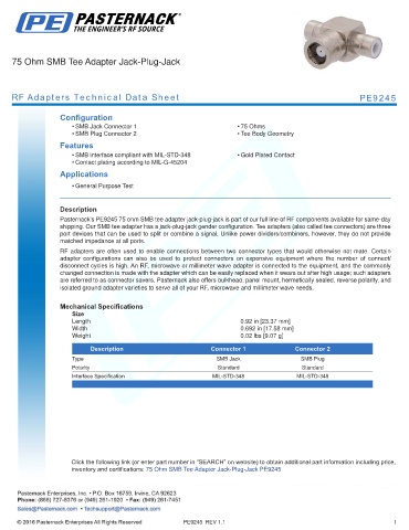 RF Adapters Technical Data Sheet PE9245