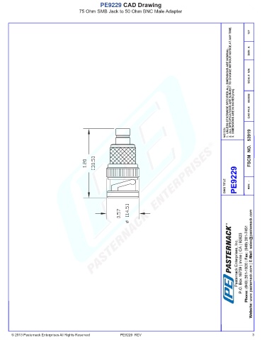 PE9229 CAD Drawing 75 Ohm SMB Jack to 50 Ohm BNC Male Adapter © 2013 Pasternack Enterprises All Rights Reserved PE9229 REV 3