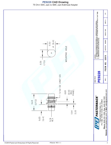 PE9228 CAD Drawing 75 Ohm SMC Jack to SMC Jack Bulkhead Adapter PE9228 REV 1.1 3