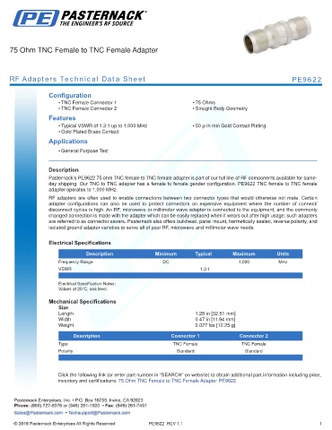 RF Adapters Technical Data Sheet PE9622
