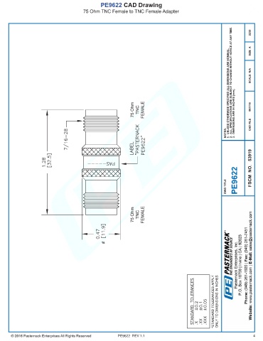 PE9622 CAD Drawing 75 Ohm TNC Female to TNC Female Adapter PE9622 REV 1.1 4
