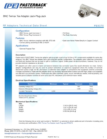RF Adapters Technical Data Sheet PE9375
