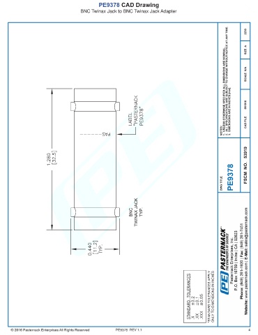 PE9378 CAD Drawing BNC Twinax Jack to BNC Twinax Jack Adapter PE9378 REV 1.1 4