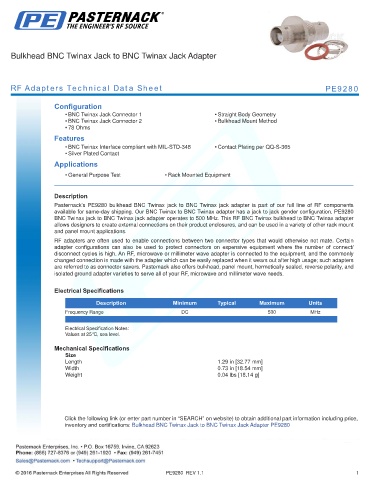 RF Adapters Technical Data Sheet PE9280