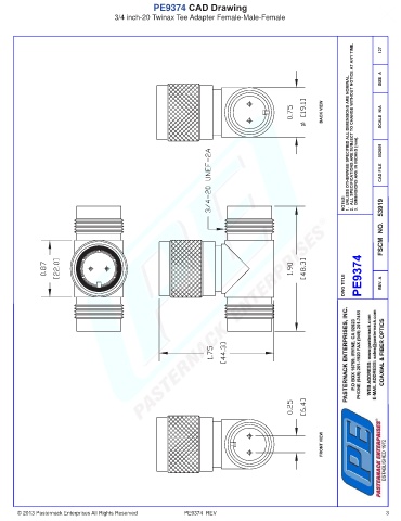 PE9374 CAD Drawing 3/4 inch-20 Twinax Tee Adapter Female-Male-Female © 2013 Pasternack Enterprises All Rights Reserved PE9374 REV 3