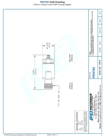 PE9782 CAD Drawing 2.92mm Female to Mini SMP Female Adapter PE9782 REV 1.1 3