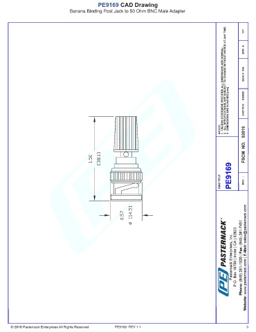 PE9169 CAD Drawing Banana Binding Post Jack to 50 Ohm BNC Male Adapter PE9169 REV 1.1 3