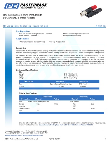RF Adapters Technical Data Sheet PE9013