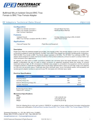 RF Adapters Technical Data Sheet PE91105