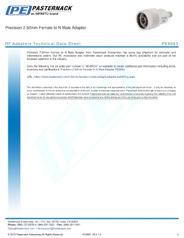 any representation or warranty regarding the suitability of the part described herein for any particular purpose, and Pasternack does not assume any liability arising out of the use of any part or documentation.