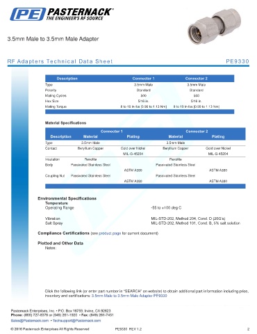 RF Adapters Technical Data Sheet PE9330