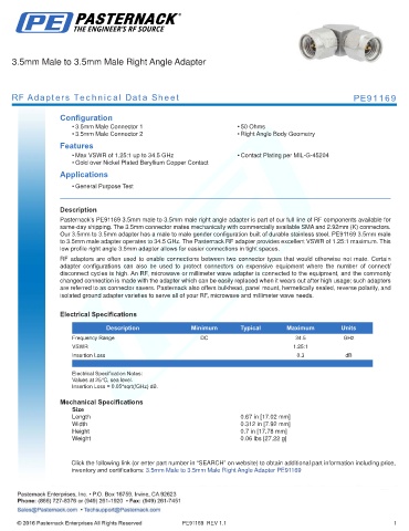 to 3.5mm male adapter operates to 34.5 GHz. The Pasternack RF adapter provides excellent VSWR of 1.25:1 maximum. This