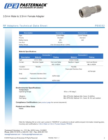 inventory and certifications: 3.5mm Male to 3.5mm Female Adapter PE9332