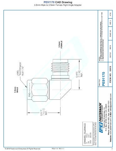 PE91170 CAD Drawing 3.5mm Male to 3.5mm Female Right Angle Adapter PE91170 REV 1.1 3