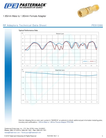 any representation or warranty regarding the suitability of the part described herein for any particular purpose, and Pasternack does not assume any liability arising out of the use of any part or documentation.