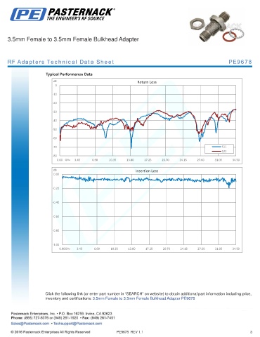 inventory and certifications: 3.5mm Female to 3.5mm Female Bulkhead Adapter PE9678