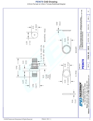 PE9678 CAD Drawing 3.5mm Female to 3.5mm Female Bulkhead Adapter PE9678 REV 1.1 5