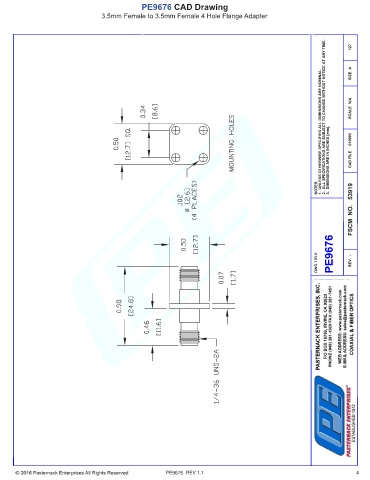 PE9676 CAD Drawing 3.5mm Female to 3.5mm Female 4 Hole Flange Adapter PE9676 REV 1.1 4