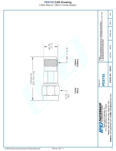 PE9745 CAD Drawing 3.5mm Male to 1.85mm Female Adapter PE9745 REV 1.1 3